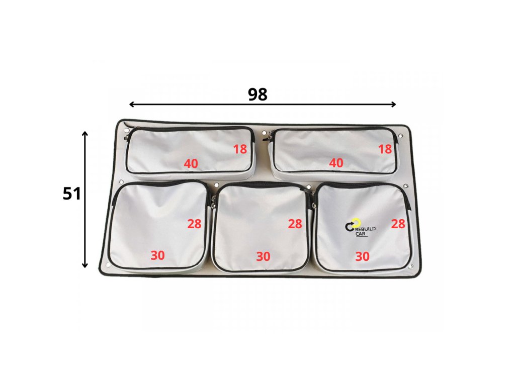Rozměr tašky je 980x510mm, hloubka jednotlivých kapes je 70mm